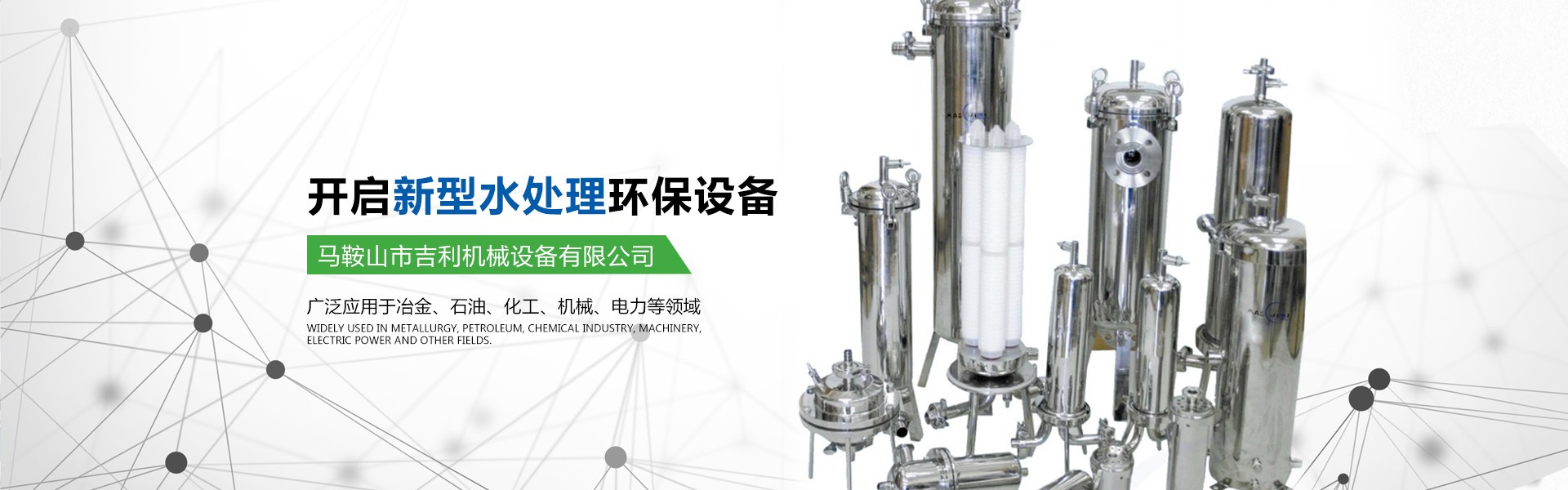 馬鞍山市吉利機械設備有限公司位于江南名城一馬鞍山市,交通十分便利。公司具有獨立法人資格,是集水處理設備的研發(fā)、設計、生產、銷售為一體的專業(yè)型企業(yè)。公司的主要產品有高中速過濾器、纖維球過濾器、新型除油過濾器、無閥過濾器、加藥裝置、管道全自動過濾器、淺層砂過濾器、攪拌機、沙水分離器、管道靜態(tài)混合器、化水設備、反滲透等膜處理設備、空氣過濾器等。公司所研發(fā)的產品有占地少、處理效果好、投資省、操作管理方便的優(yōu)點,受到客戶的一致好評。